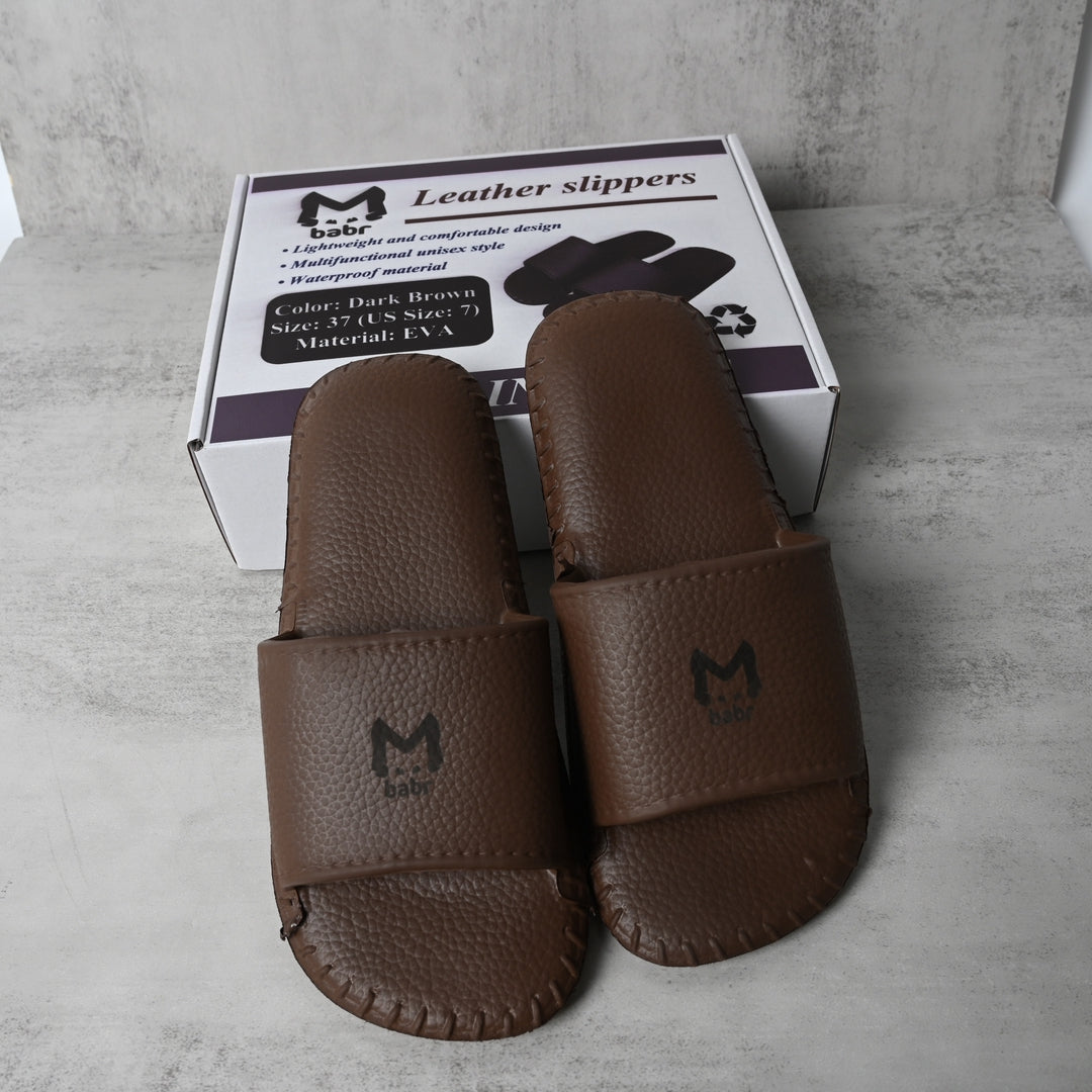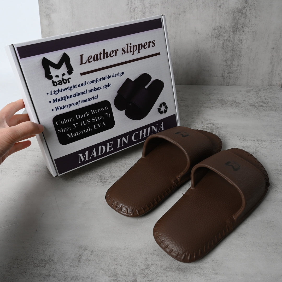 Step into comfort and style with these fashionable leather-like slippers. Made from lightweight, water-resistant EVA material with a vintage leather texture, they offer secure non-slip traction perfect for indoor, bathroom, or light outdoor use.
